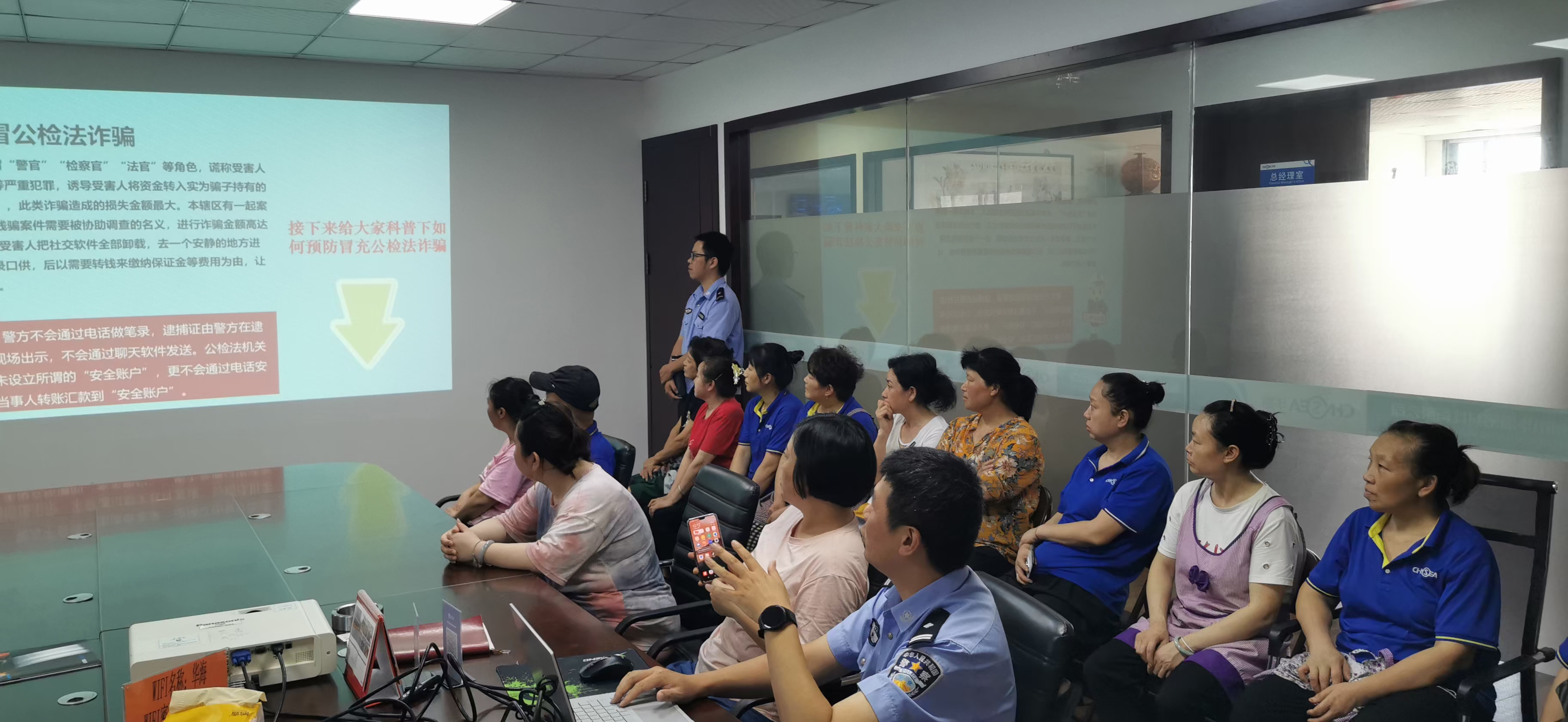 警官為大家詳細(xì)講述介紹了各式各樣的詐騙方式,教會我們?nèi)绾握_辨別騙子的詐騙手段,保護(hù)好公司及個人自身的利益,全體人員受益匪淺,在此對永興派出所警官的細(xì)心講解表示感謝!